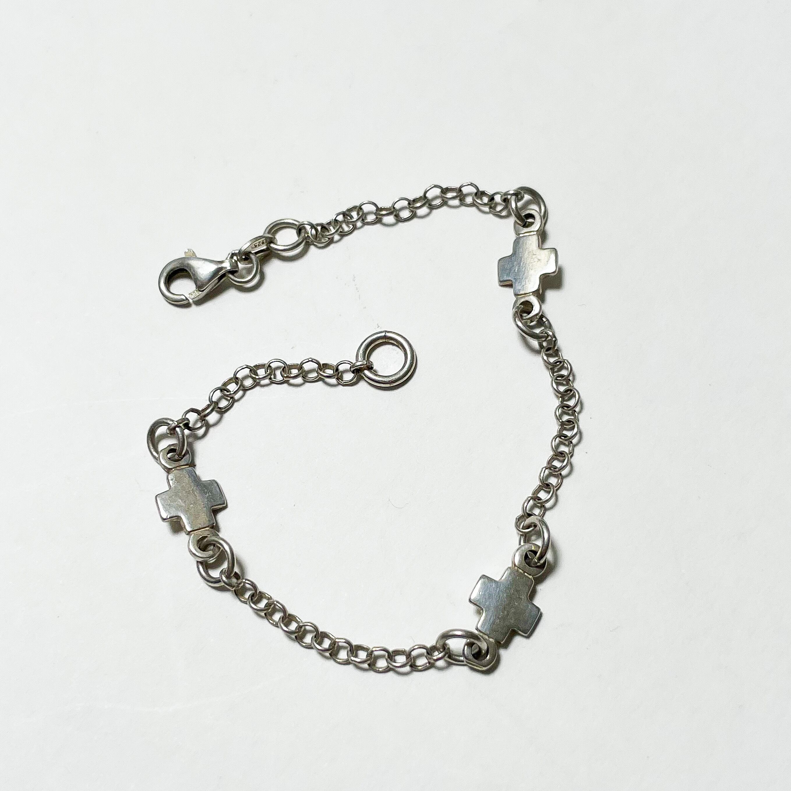 クロスとチェーンがリンクしたイタリア製925シルバーのブレスレットです。
