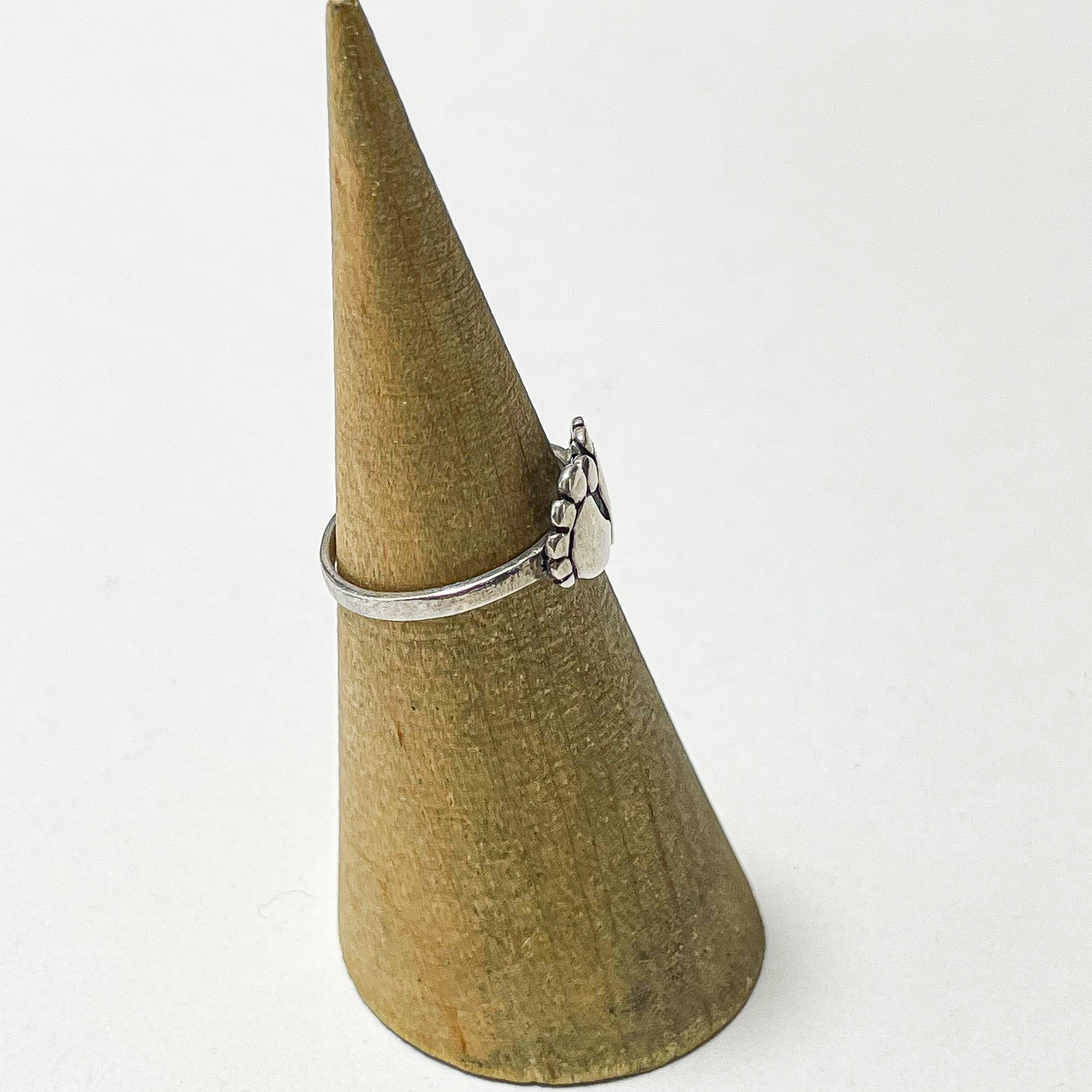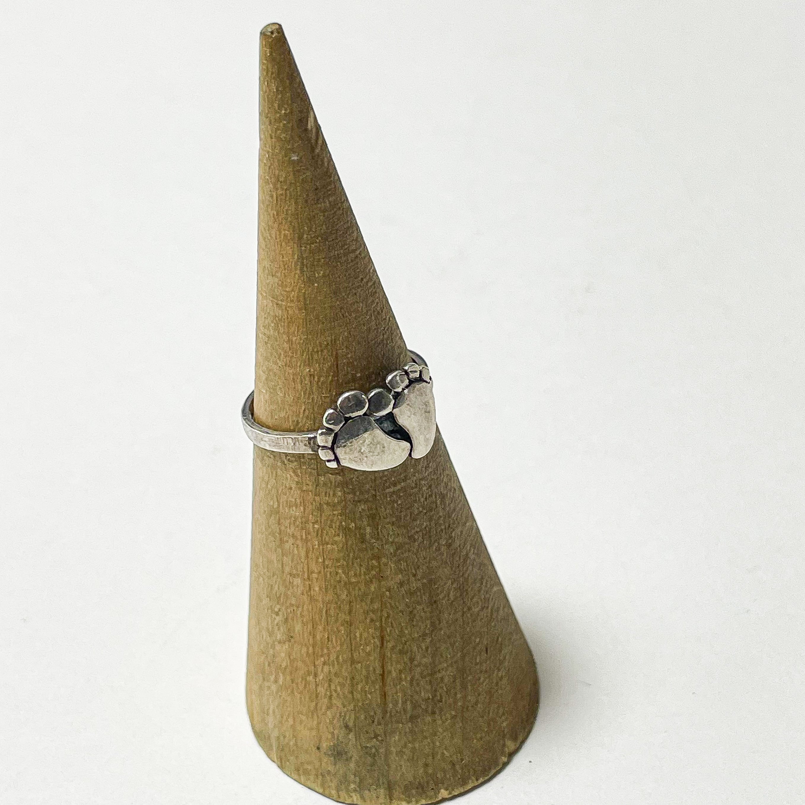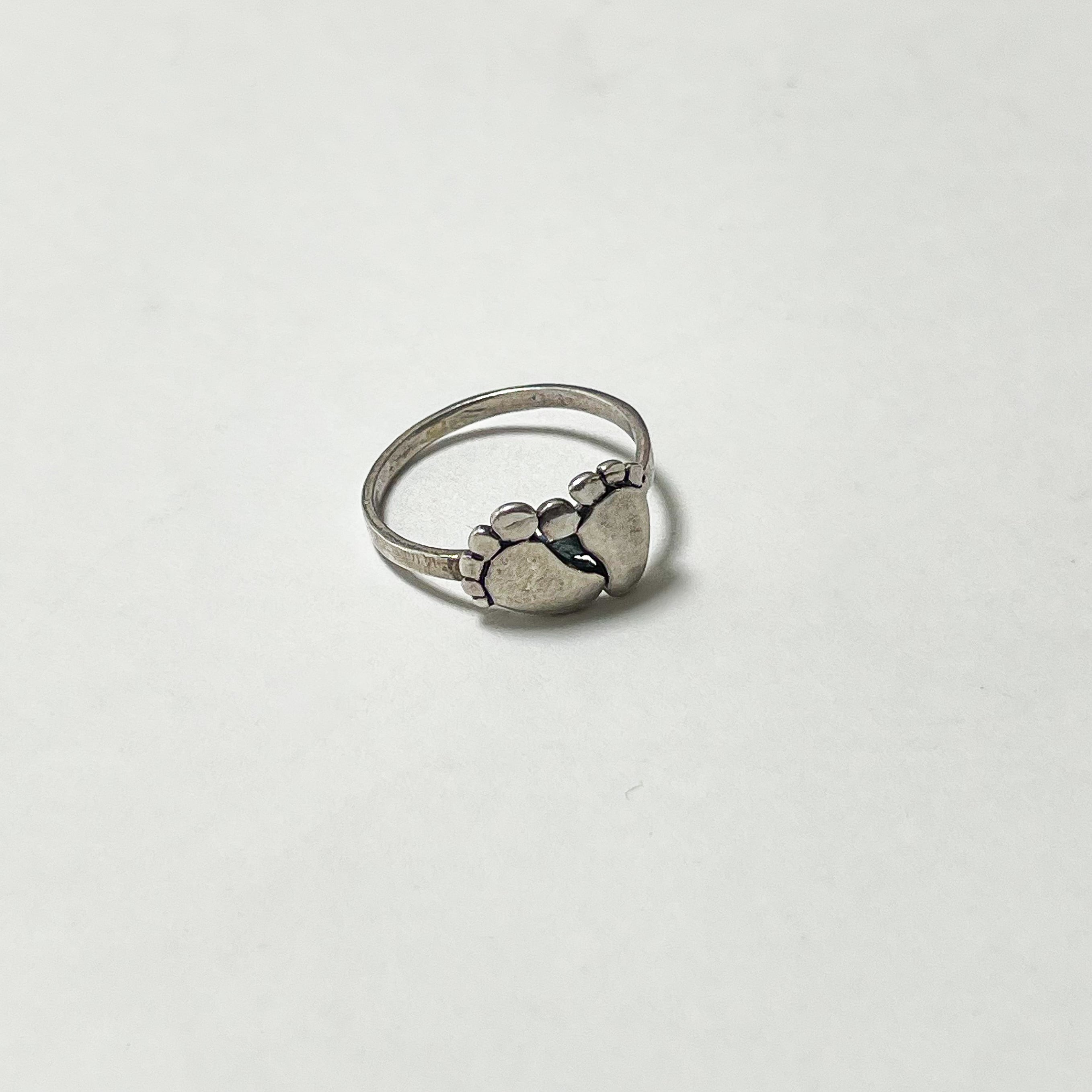 925シルバーのフットリングです。 赤ちゃんの足の様なころんとした丸みのあるデザインが、手元にさりげない可愛らしさと個性をプラスしてくれます。 刻印はほぼ消えてしまっていますが925シルバーで間違いございません。 こちらは00's〜のお品です。 Weight*約1.4g Size*約7号 Condition*特に目立つダメージや汚れはなく良い状態です。 あくまでUSEDですので神経質な方や新品の様なものをお求めの方はご購入をお控え下さいませ。