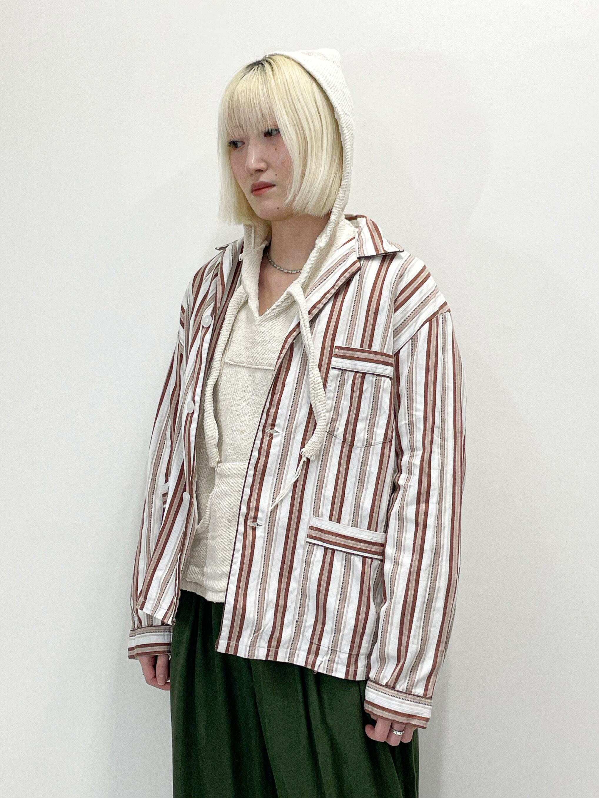 プリントではなく織りによる立体感のあるマルチストライプ柄は、プリント物にはない豊かな表情とヴィンテージらしい雰囲気たっぷりです。