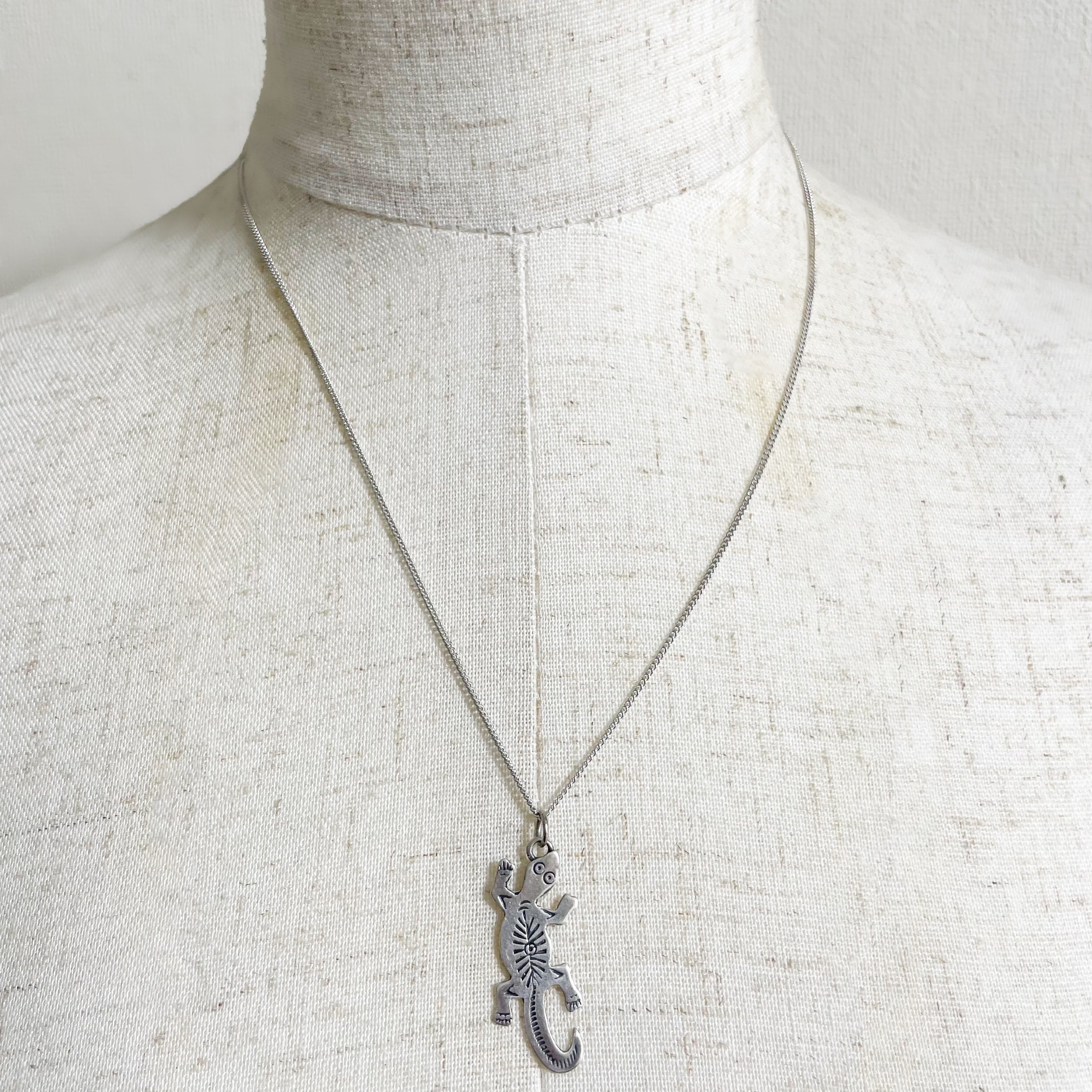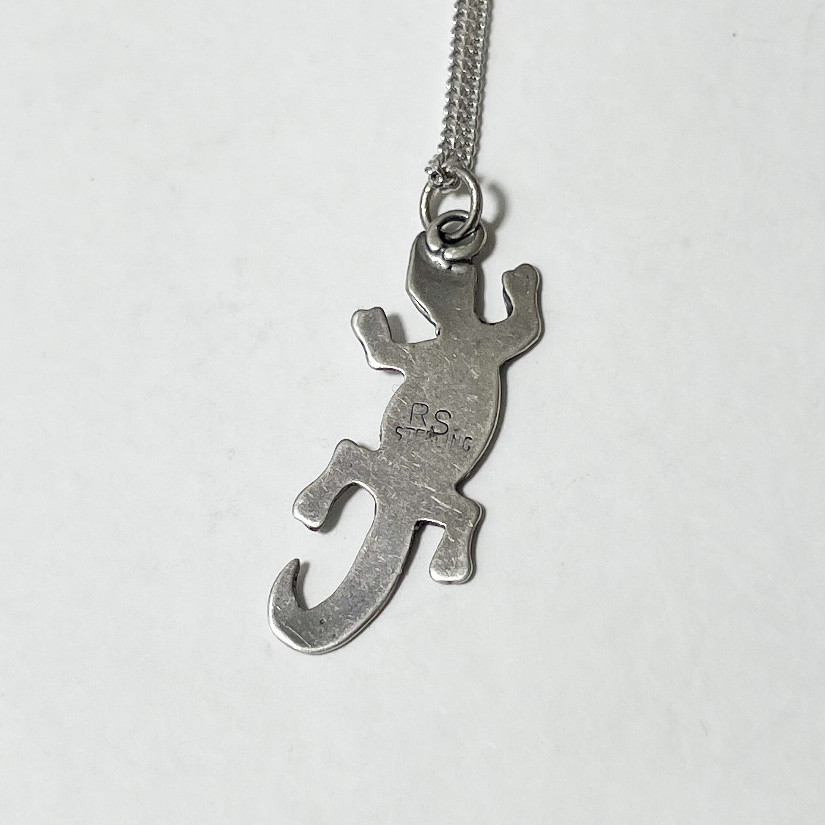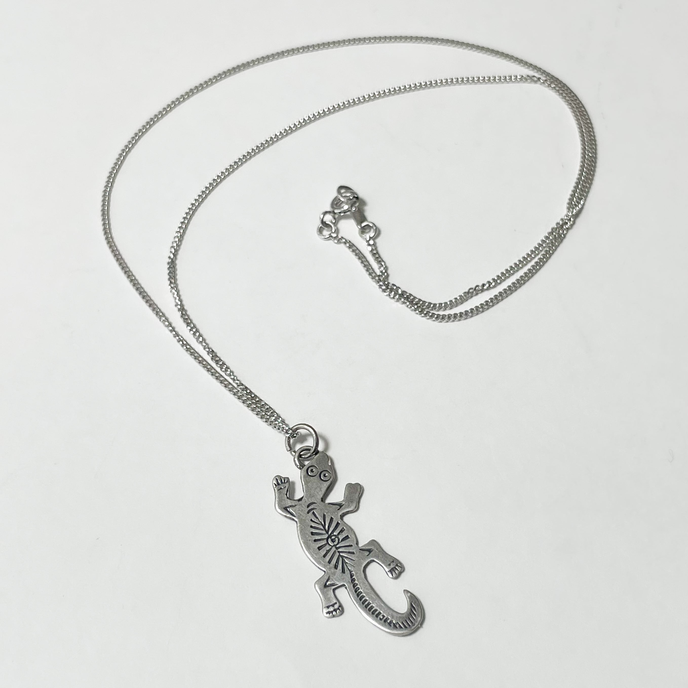 ナバホ族のアーティストによるスターリングシルバーのトカゲモチーフペンダントネックレスです。
