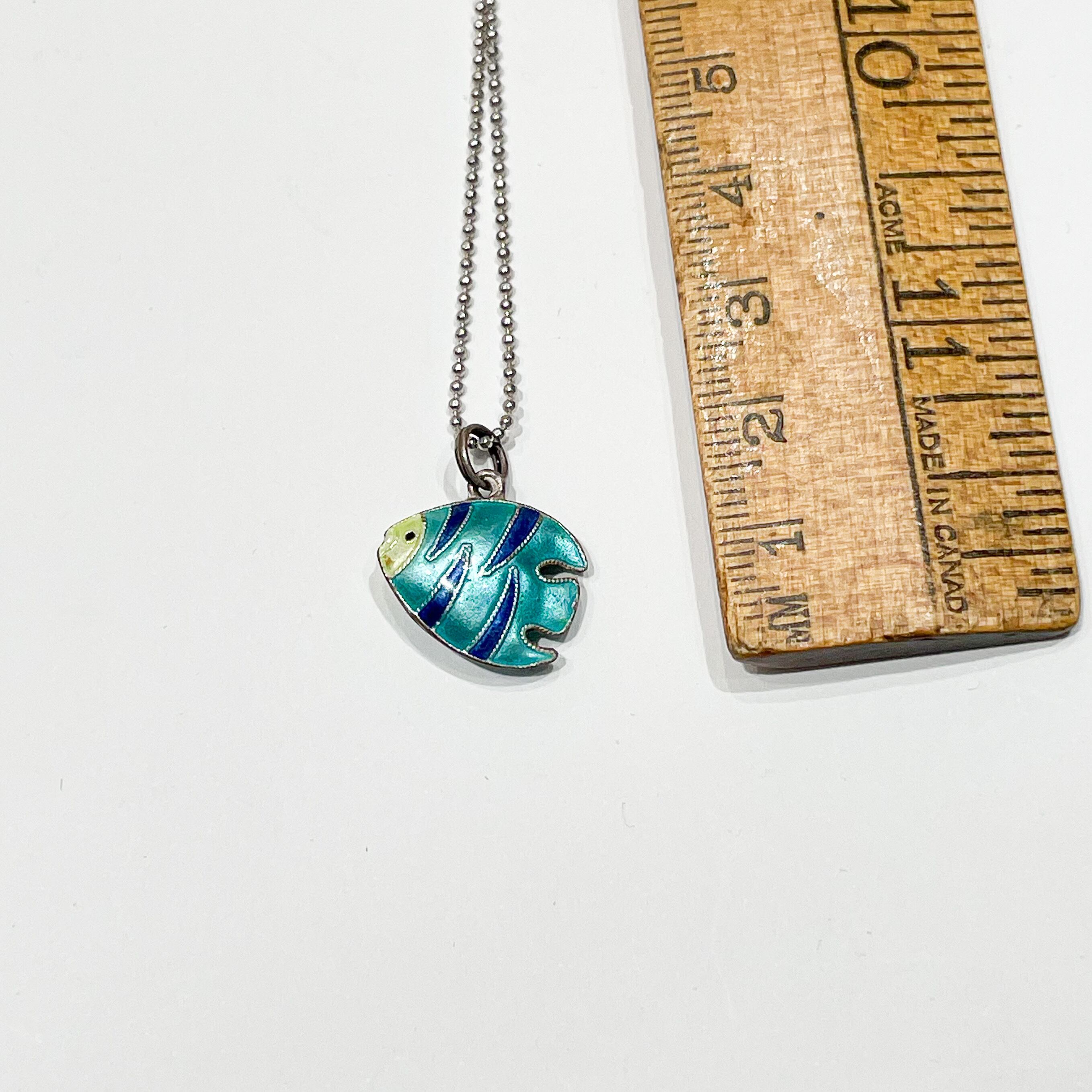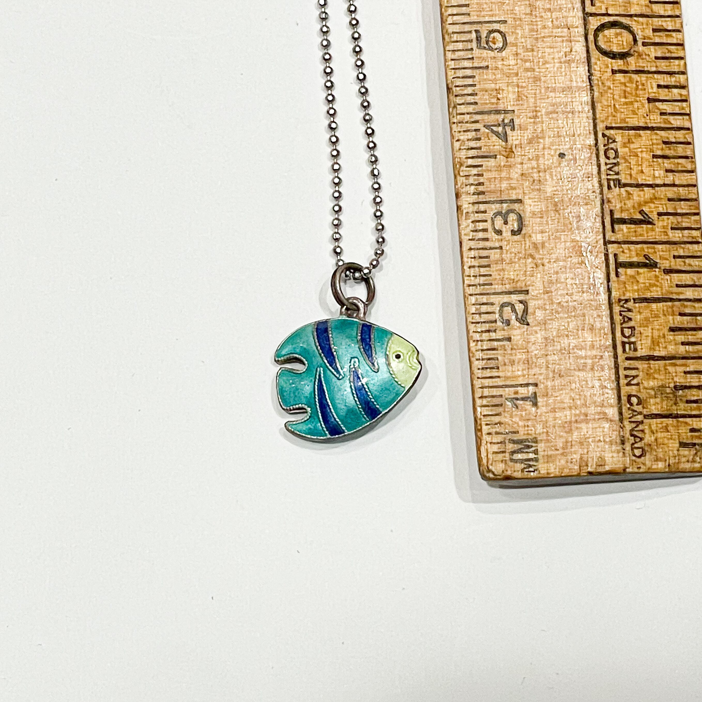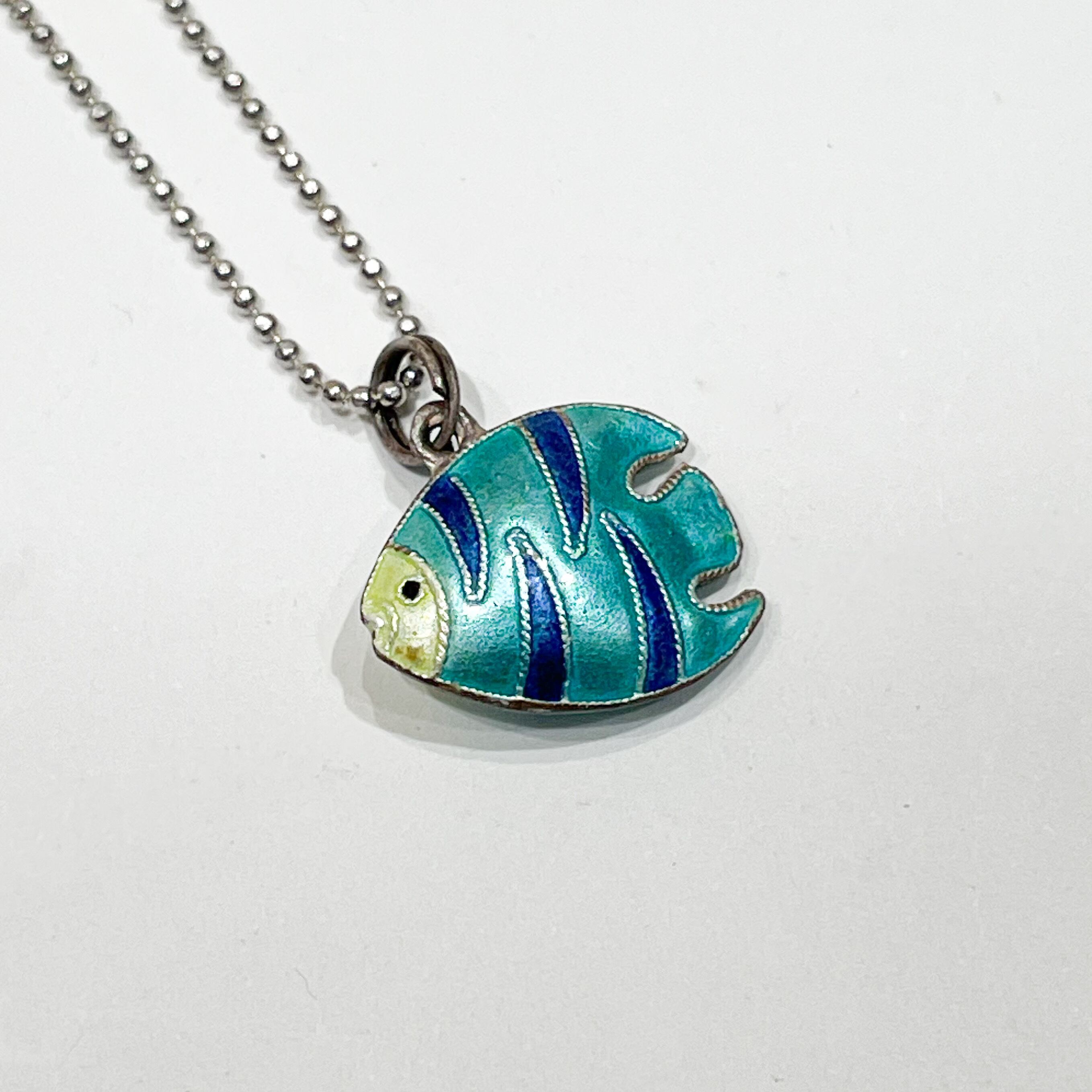 925シルバーのヴィンテージエナメルフィッシュペンダントネックレスです。