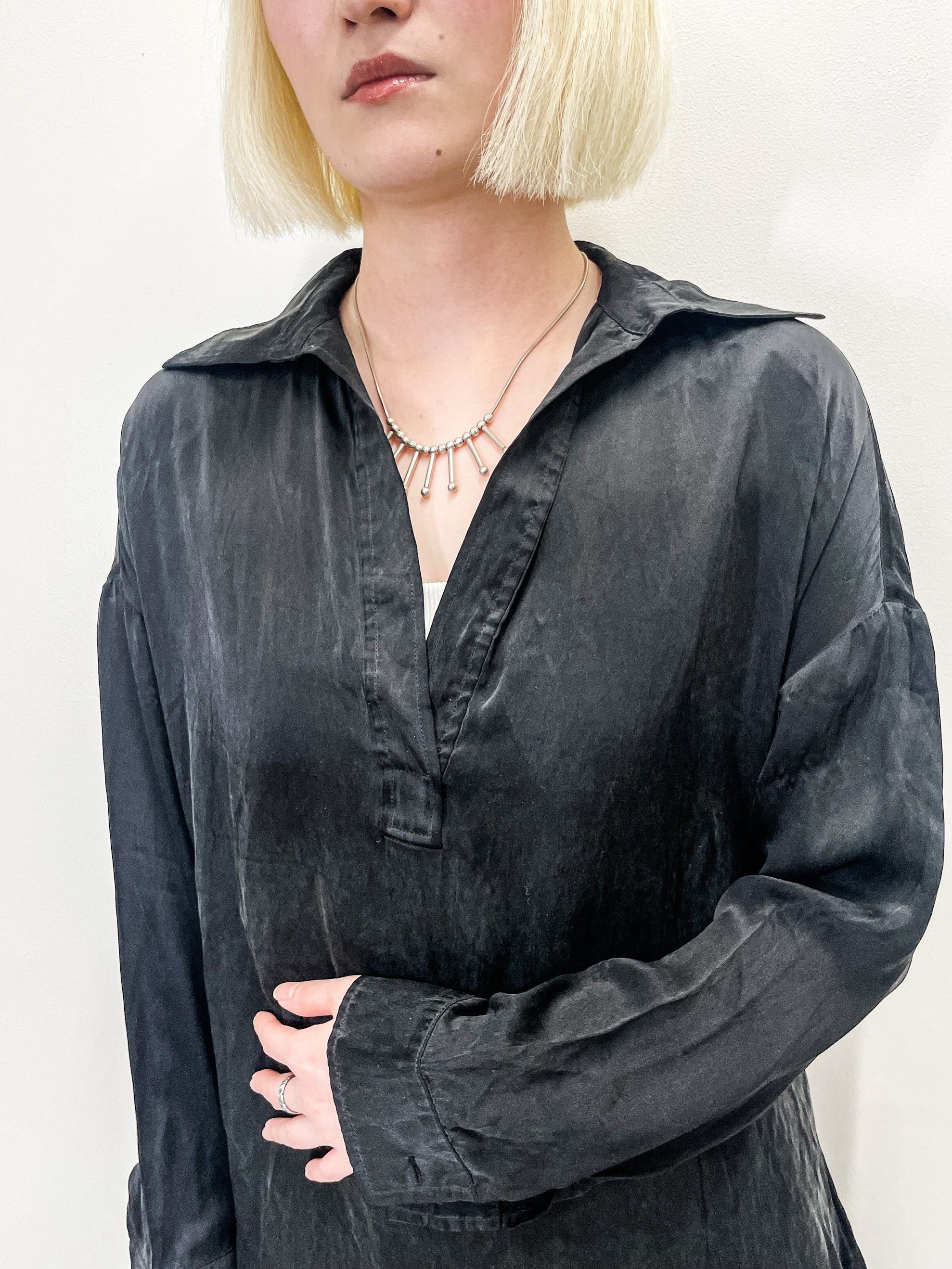 ミニマルなデザインにより、美しく揺れるシルク特有のドレープ感が最大限に引き出されています。