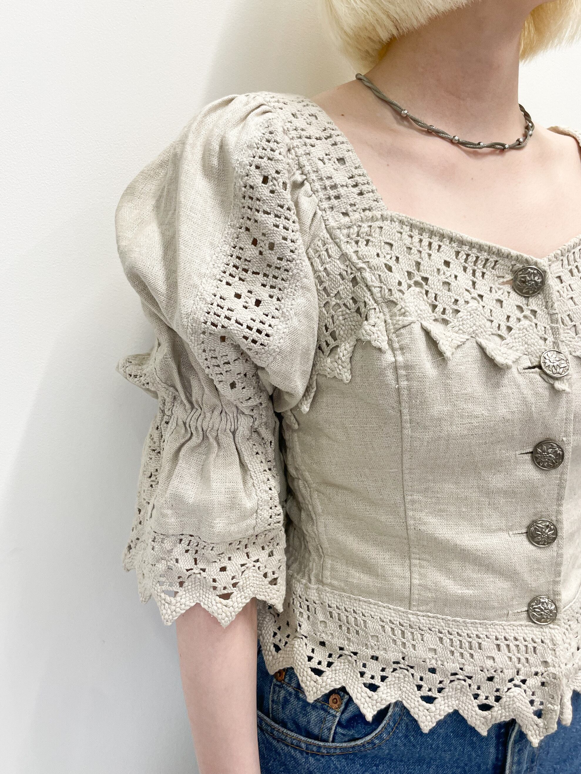 ハンガリーで見つけた、伝統的なチロルスタイルを展開していたLandhausのヴィンテージチロリアンブラウスです。