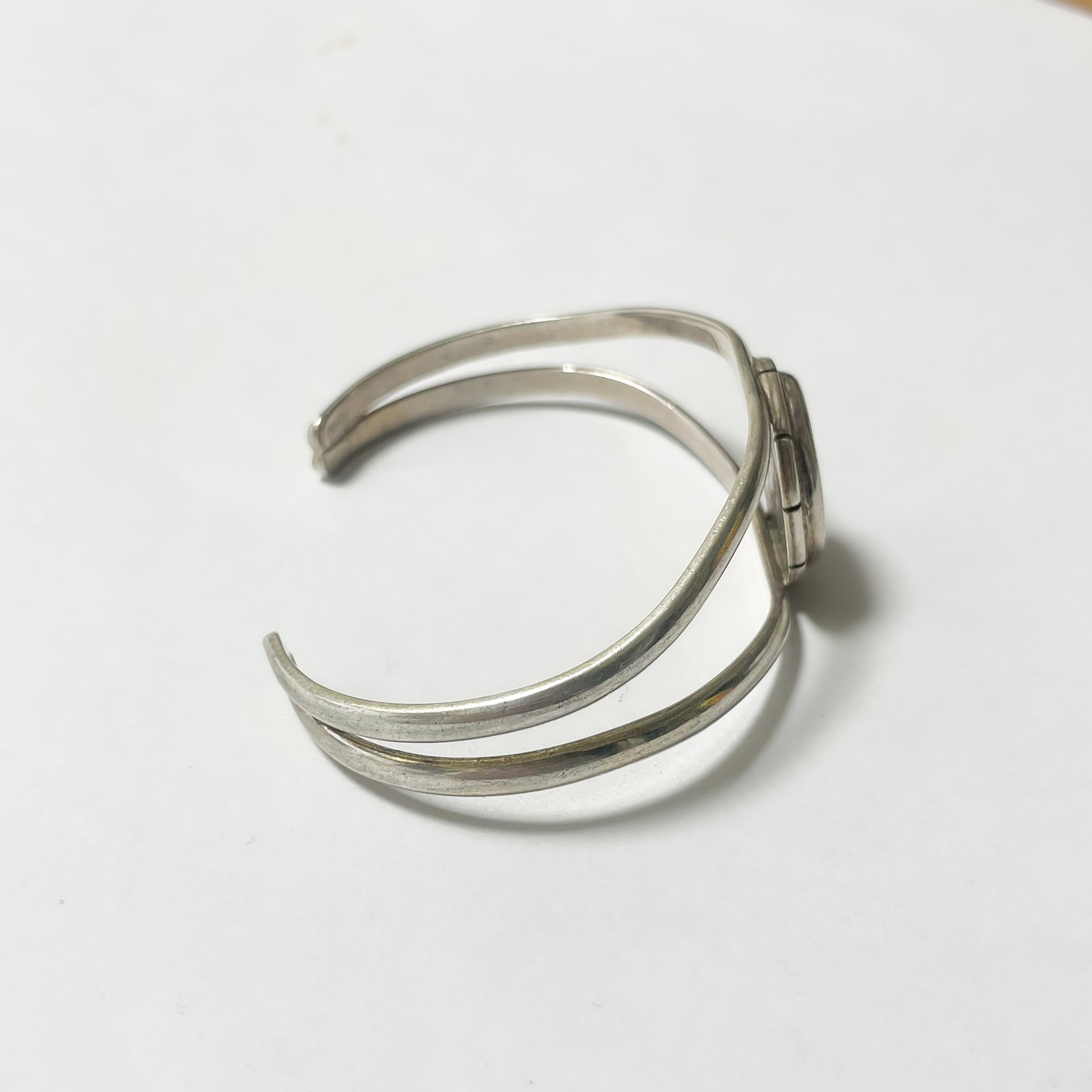 そのコーラルを挟むようにアームがふたつに分かれたスプリットシャンク仕様は、インディアンジュエリーでも定番のデザインでしっかりとした存在感がありつつも、肌がのぞくことで手元を重たく見せずすっきりとした印象を与えてくれます。