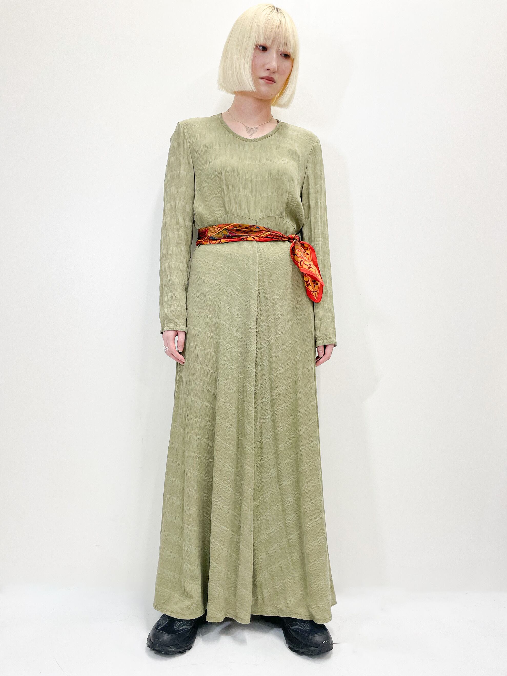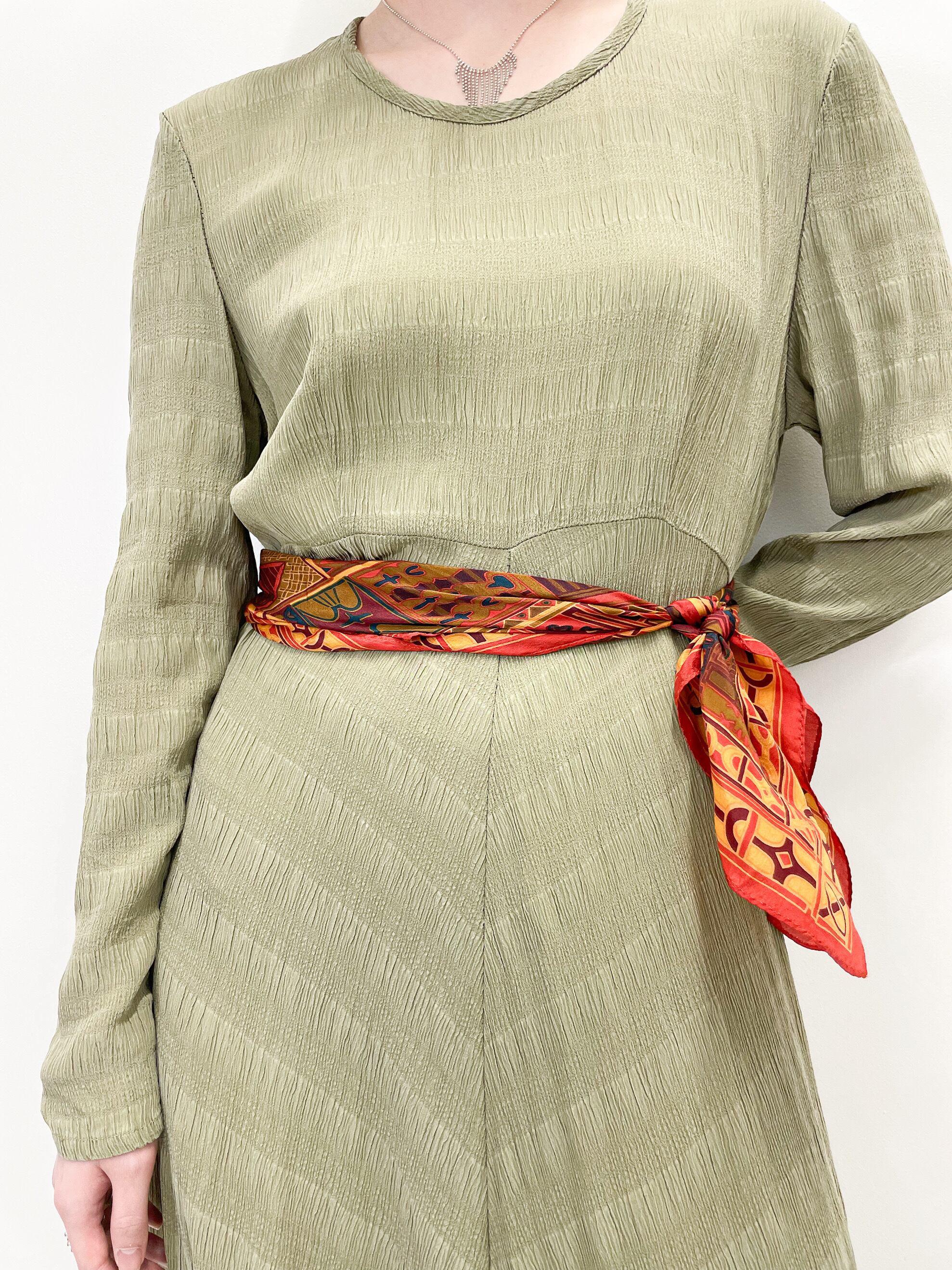 着用画像の用に別売りのお手持ちスカーフやベルトでウエストマークすると全体が引き締まります。