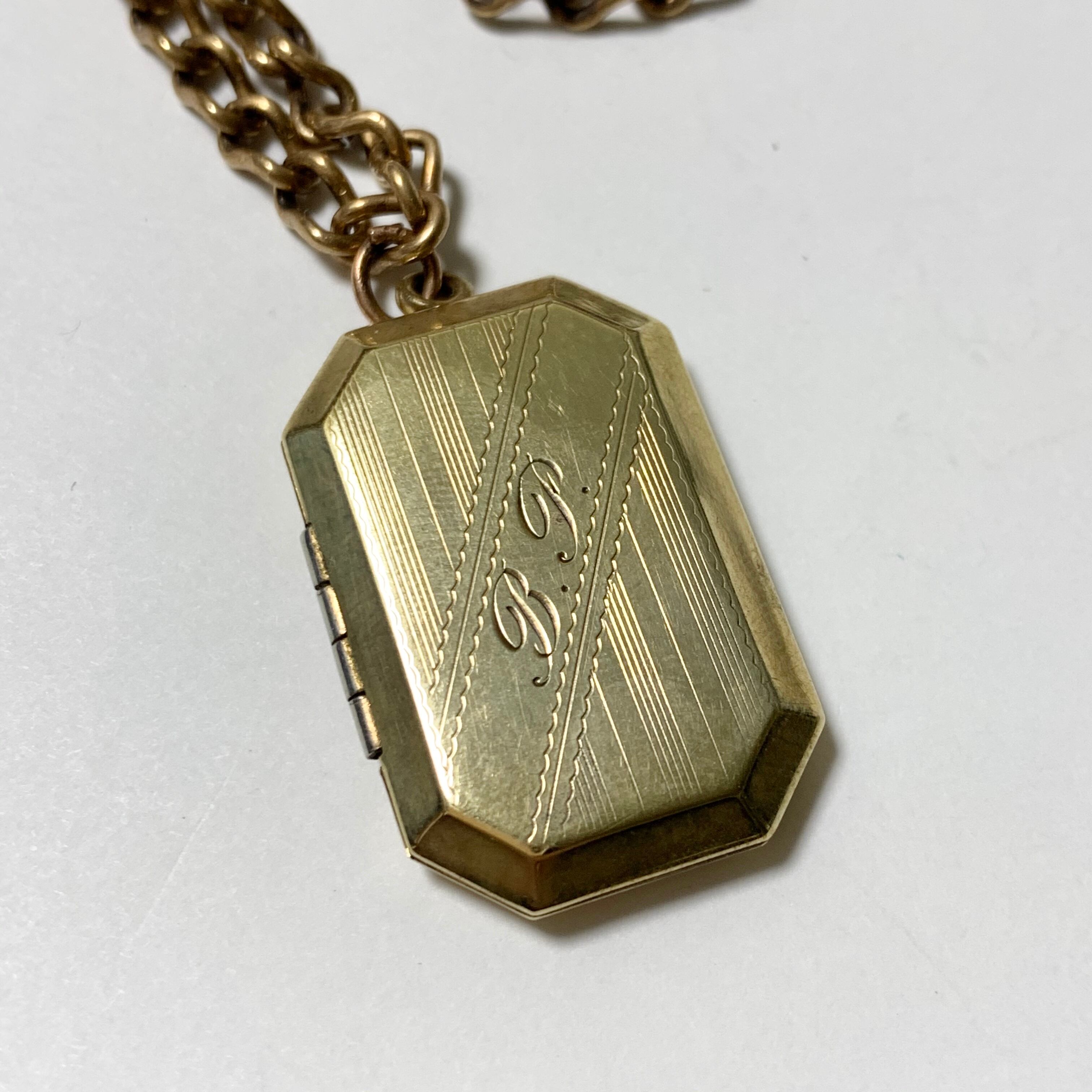 表面にはアールデコな模様どイニシャルが彫金により施されています。