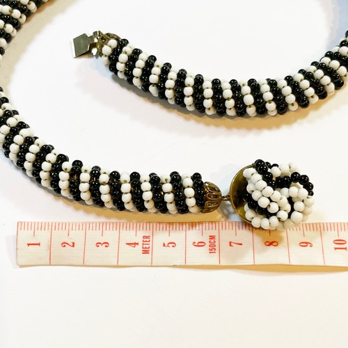ブラックとホワイトのガラスシードビーズが纏われた、ヴィンテージイヤリングとチョーカーネックレスです。