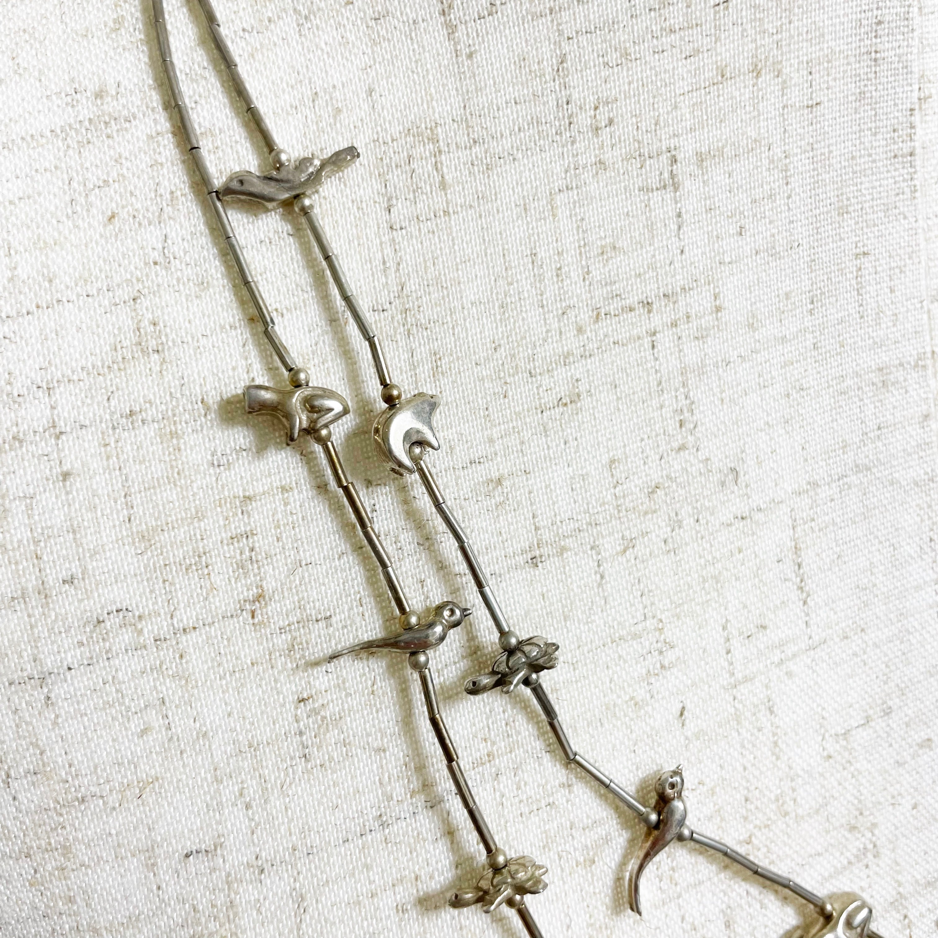ズニ族のヴィンテージリキッドシルバー&フェティッシュビーズネックレスです。