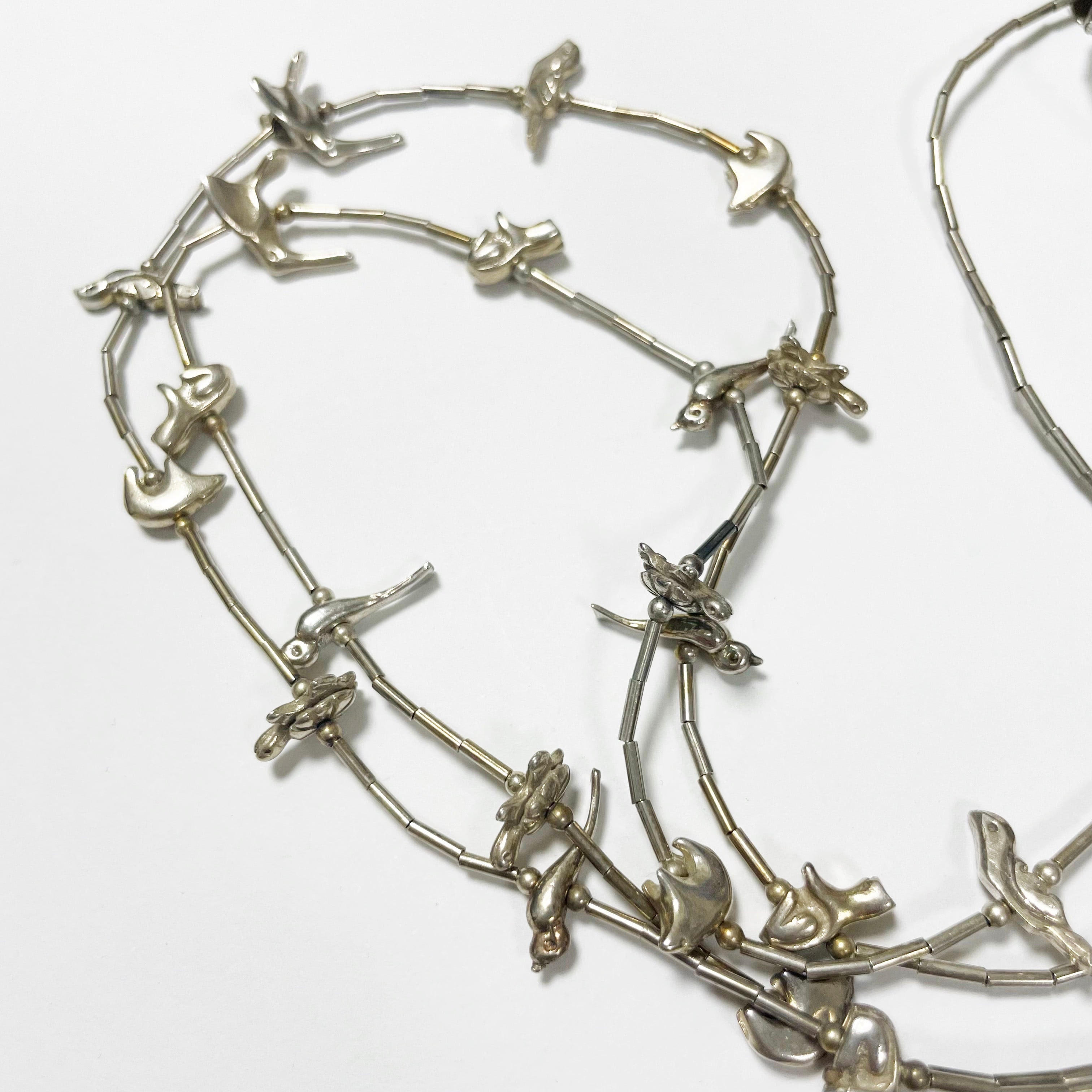 ズニ族がお守りとし様々な素材を動物に見立てた物をフェティッシュと呼び、そのフェティッシュのビーズと筒状のリキッドシルバーのビーズが連なった可愛らしいデザインです。