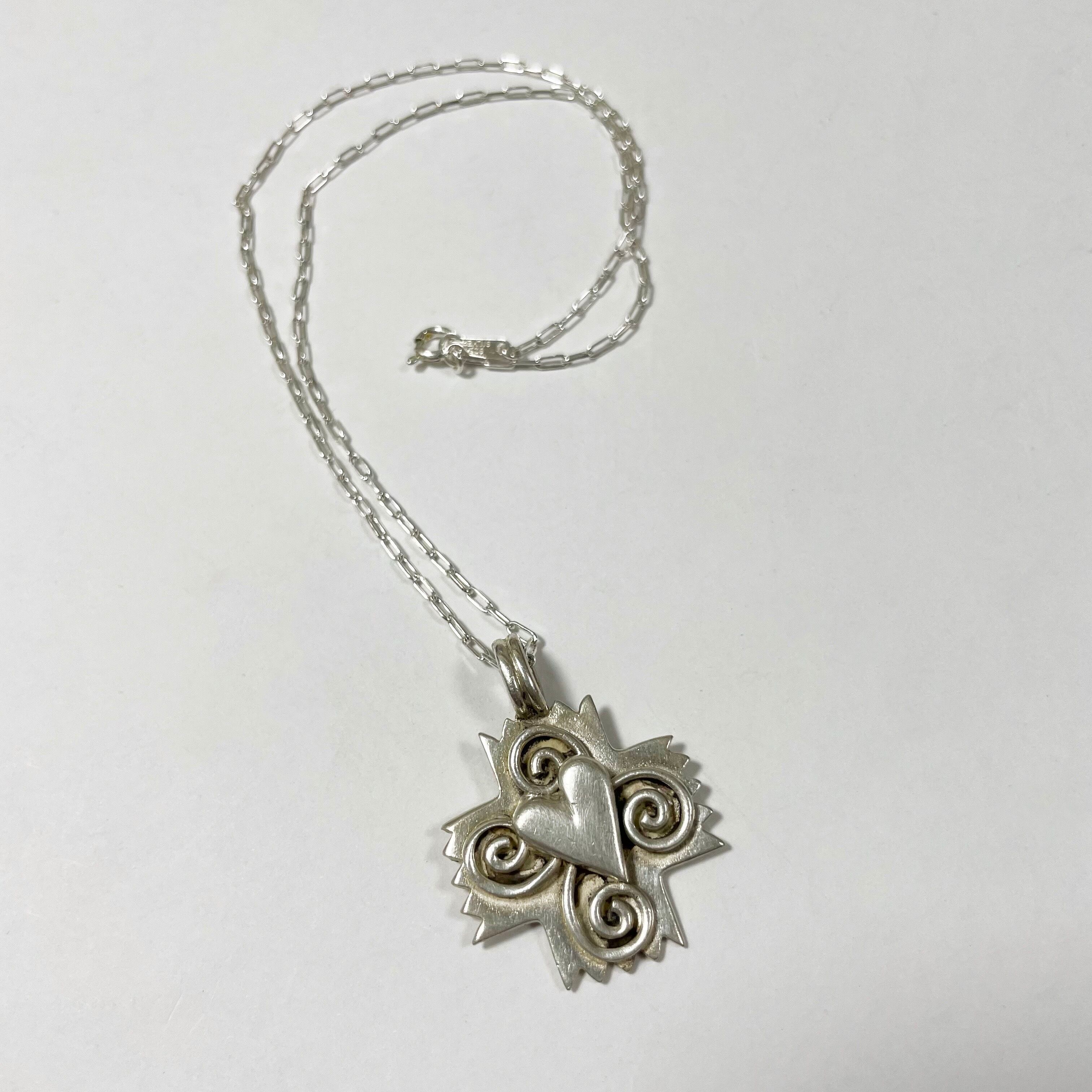 ヴィンテージ 925シルバークロスハートペンダントネックレスです。