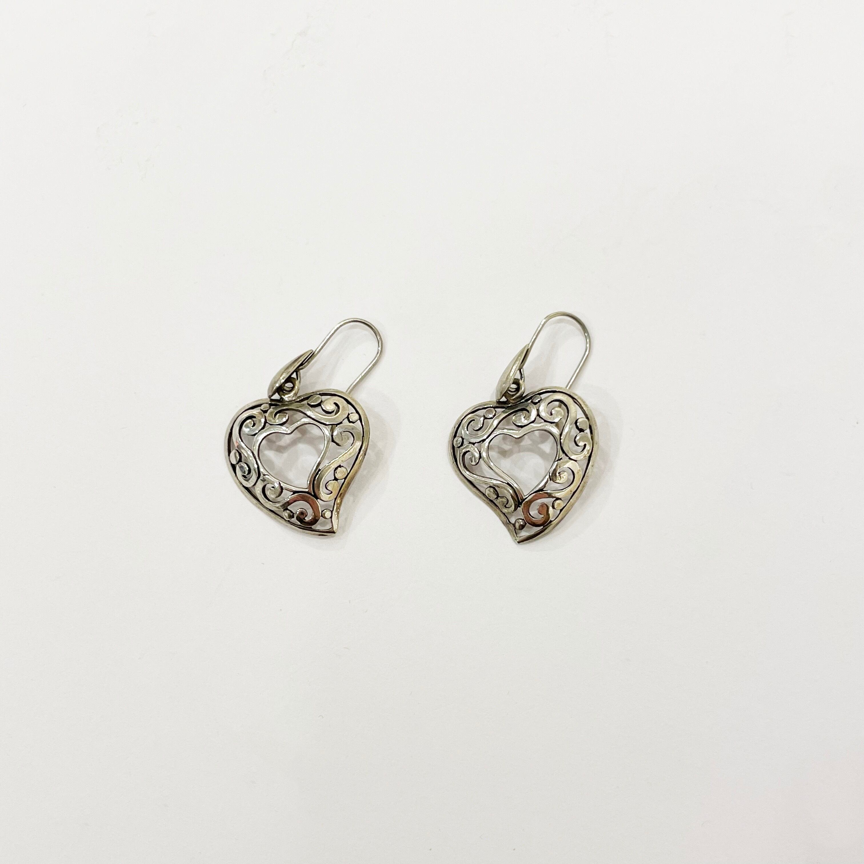 ヴィンテージ925シルバーハートピアスです。 アラベスク模様の透かしデザインが効いたハートモチーフがアンティークな雰囲気で、とっても可愛いです。 ハートの裏に925の刻印が確認できます。 こちらは80's頃のヴィンテージです。 Weight*両耳合わせて約3.6g Size*画像にてご確認ください。 Condition*特に目立つダメージや汚れはなく良い状態です。 あくまでUSEDですので神経質な方や新品の様なものをお求めの方はご購入をお控え下さいませ。
