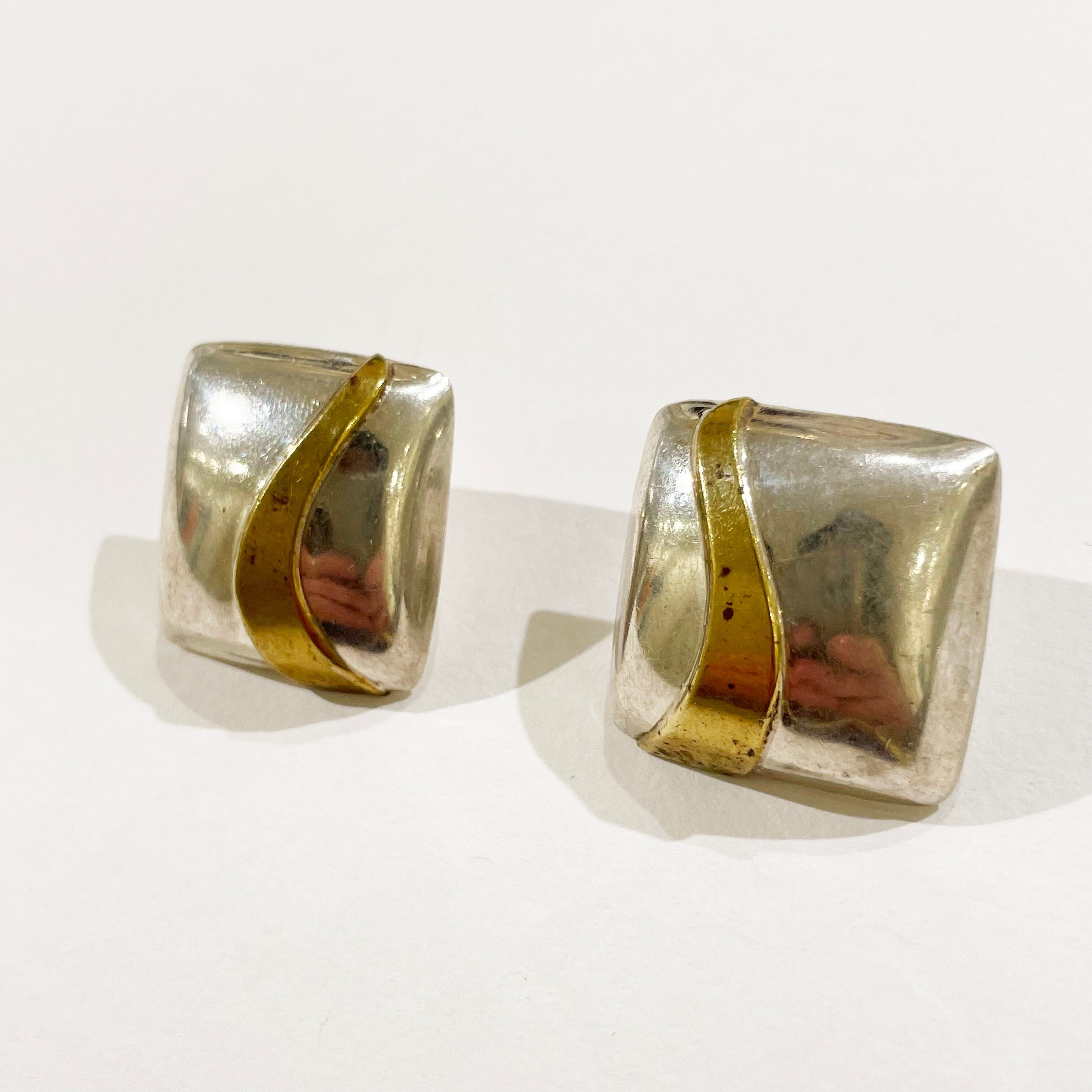 メキシコ製925シルバーとブラスのヴィンテージピアスです。