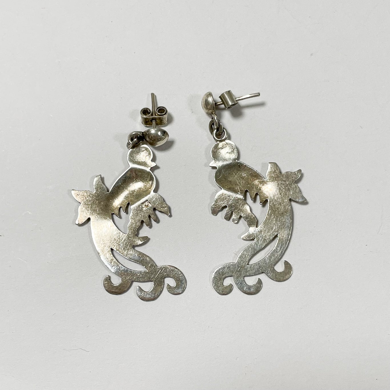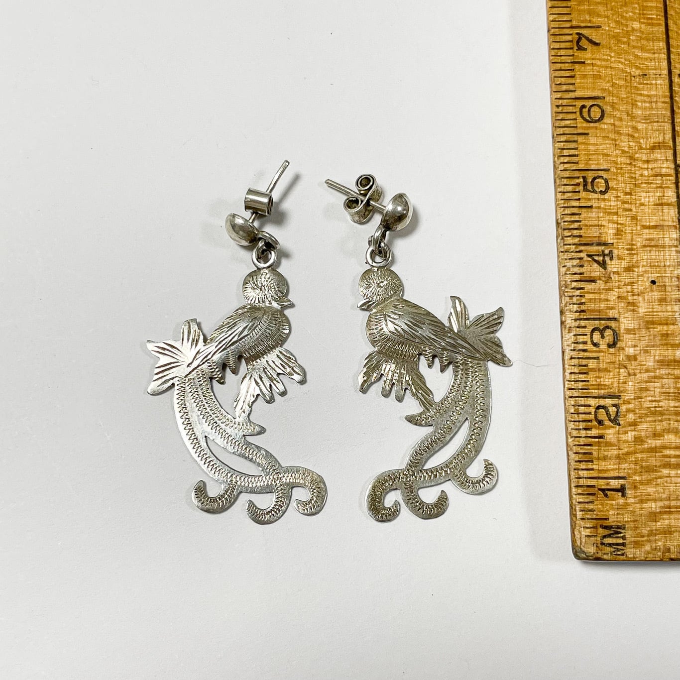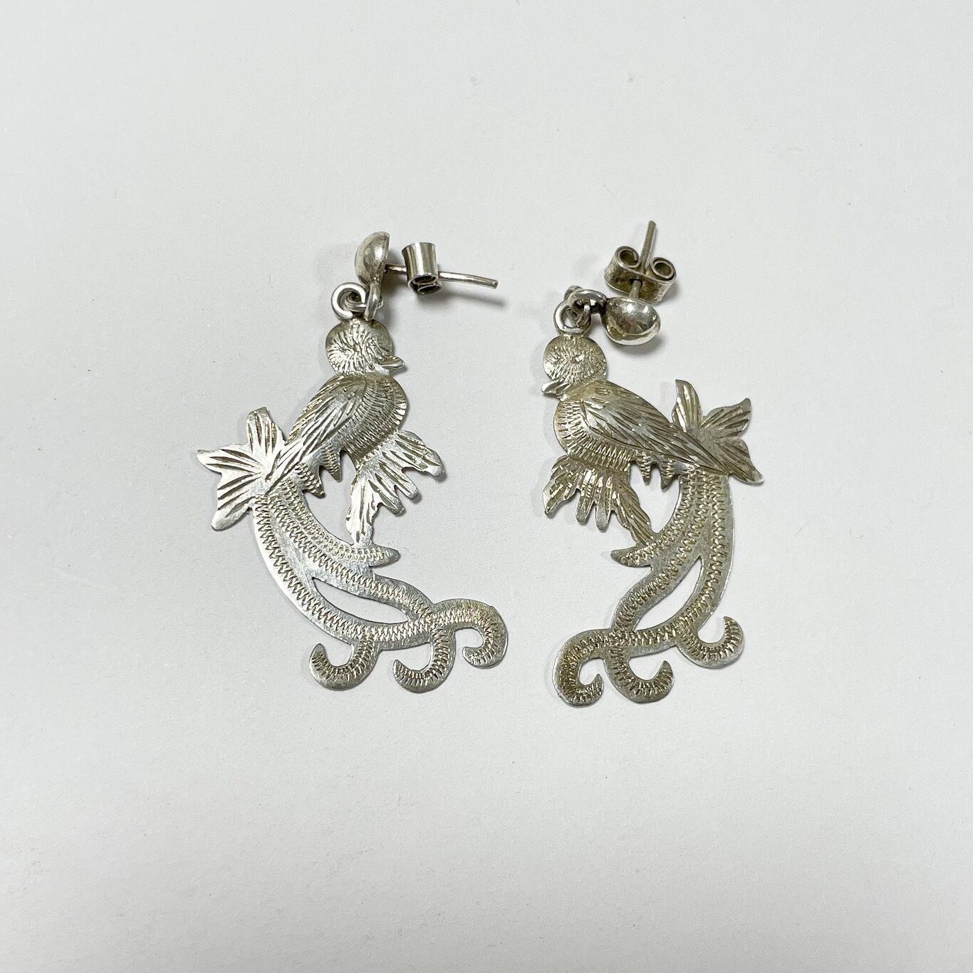 南米を象徴する神秘的な鳥、ケツァールをモチーフにした925シルバーのヴィンテージピアスです。