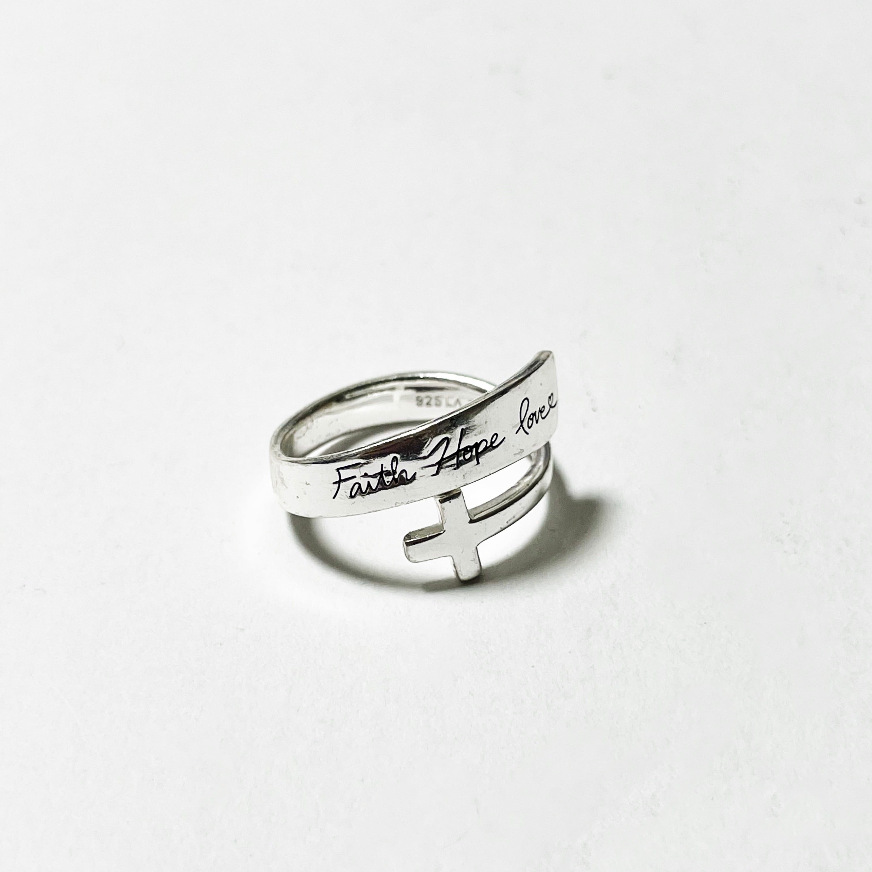 キリスト教の三元徳である、Faith Love Hope (信仰、愛、希望)がリングに入った925シルバーのリングです。