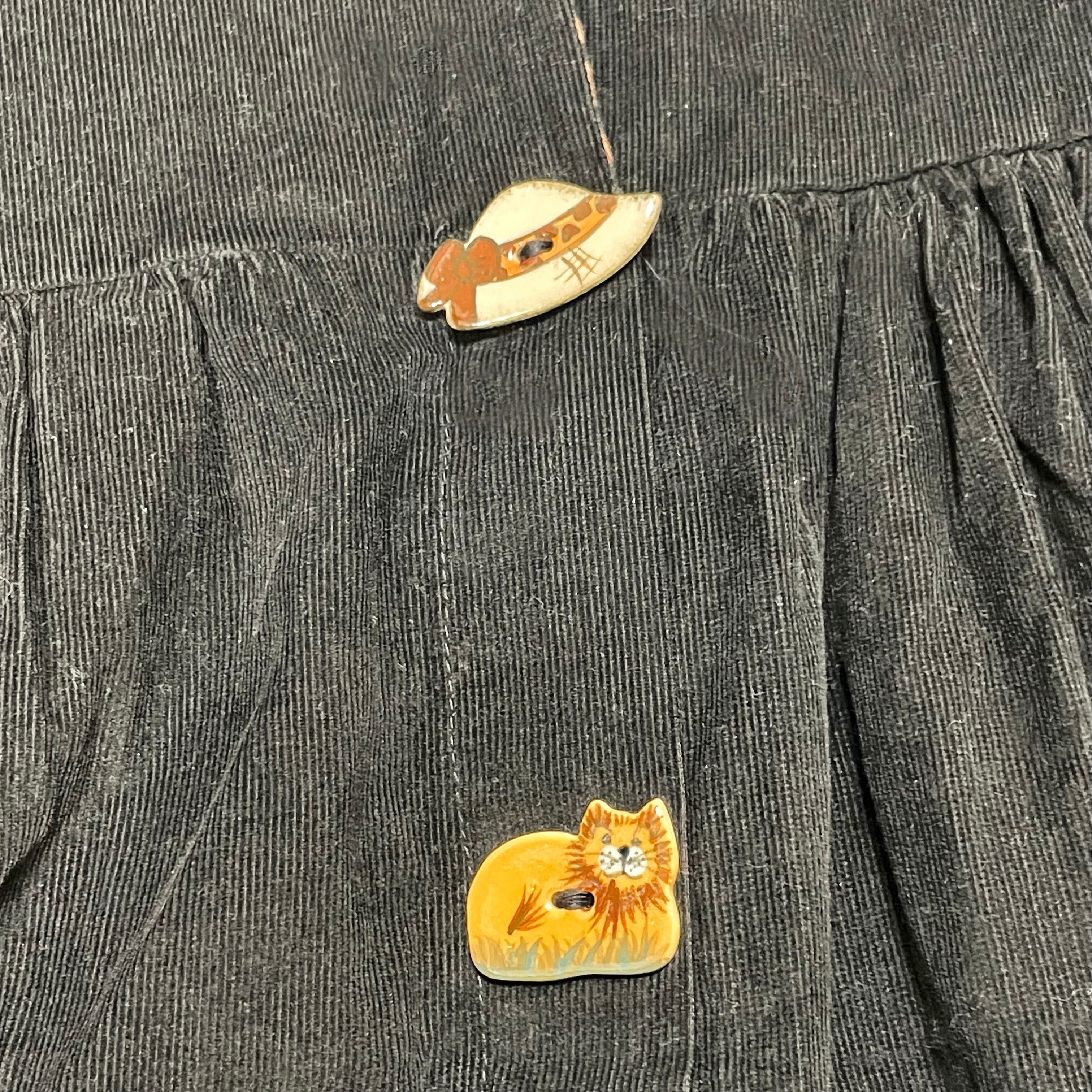 襟部分やポケット部分がレオパード柄とボタンが全てセラミック製になっているのがポイントで、特にセラミック製ボタンは一つ一つ違うものが使われており大変可愛らしいです。