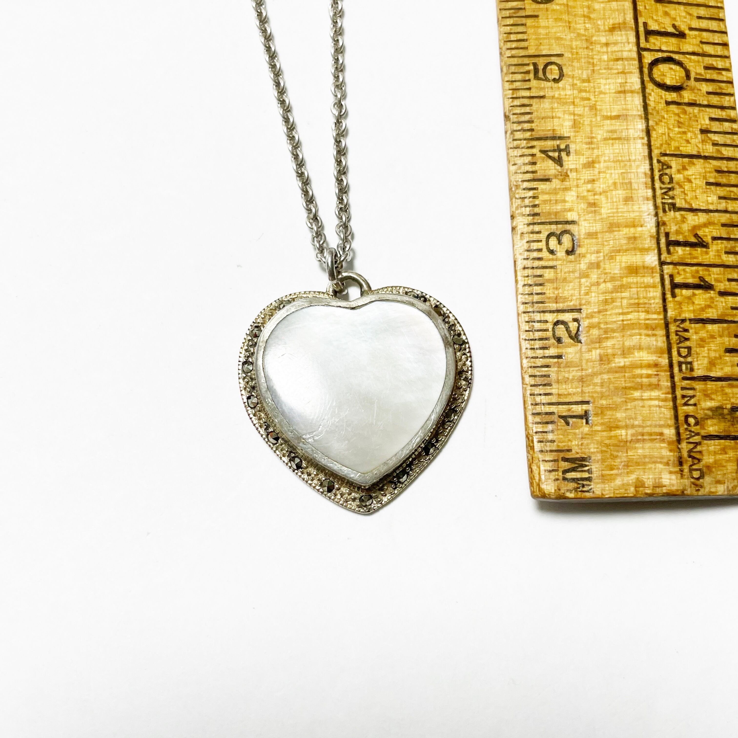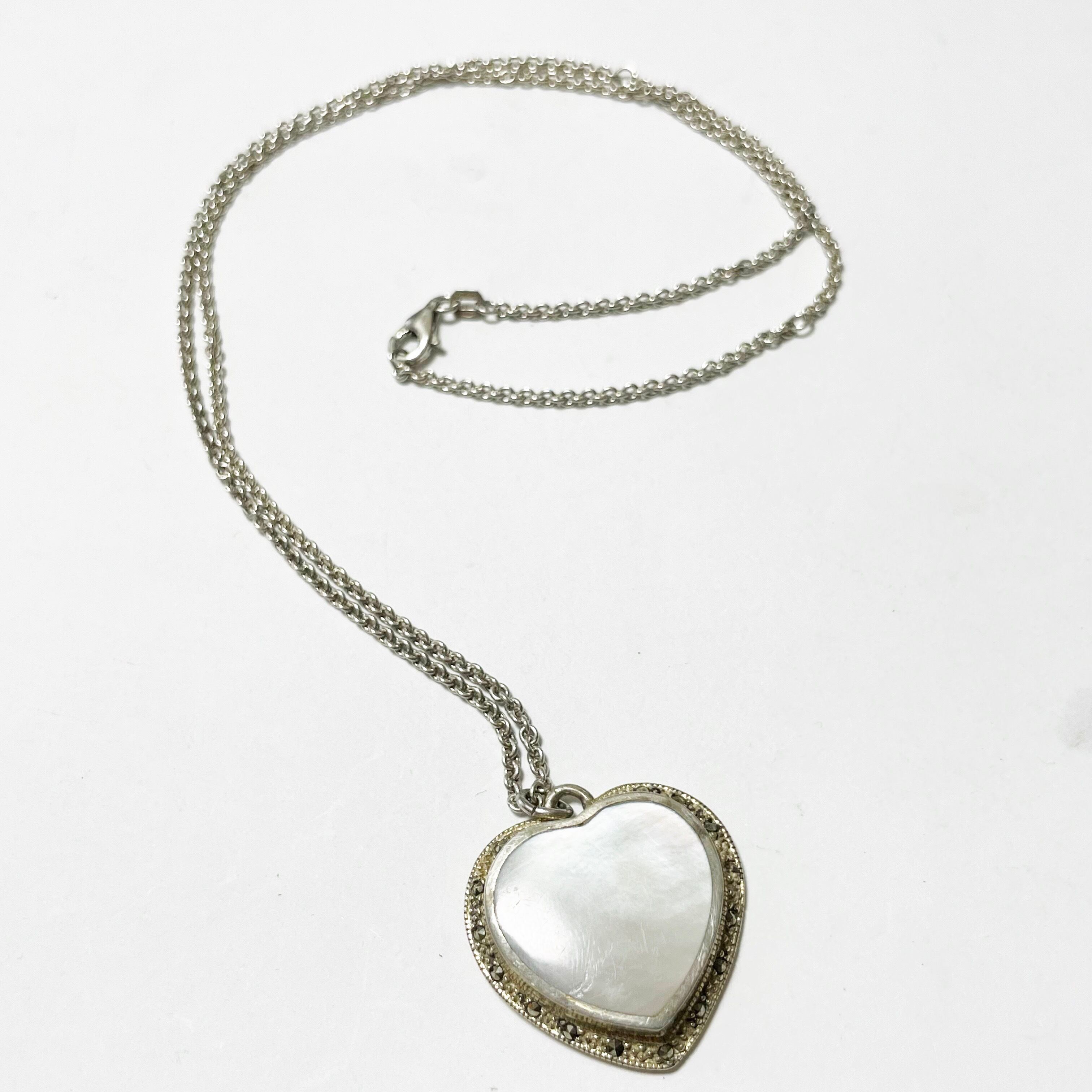 白蝶貝と925シルバーのヴィンテージハートペンダントネックレスです。