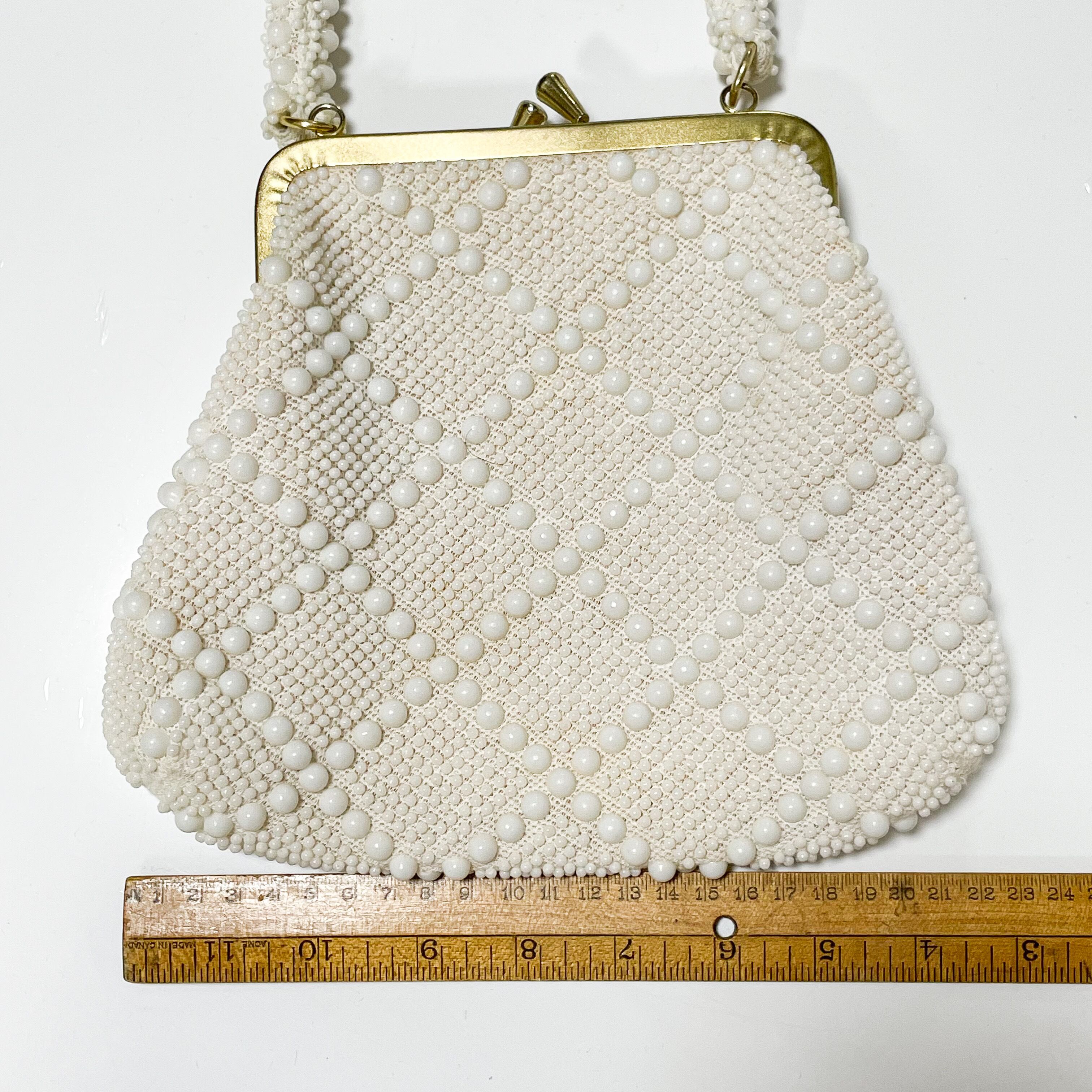 ヴィンテージビーズバッグです。 全面に白いビーズが着いたガマ口タイプです。 レトロな雰囲気がとっても可愛いです。 カジュアルなコーディネートに合わせても良し、パーティーやウエディングシーンにもオススメです。 こちらは70's頃のヴィンテージです。 Size*画像にてご確認くださいませ。 Condition*バッグ内側の生地に黄ばみがございます。 あくまで年代物ですので神経質な方や新品の様なものをお求めの方はご購入をお控え下さいませ。