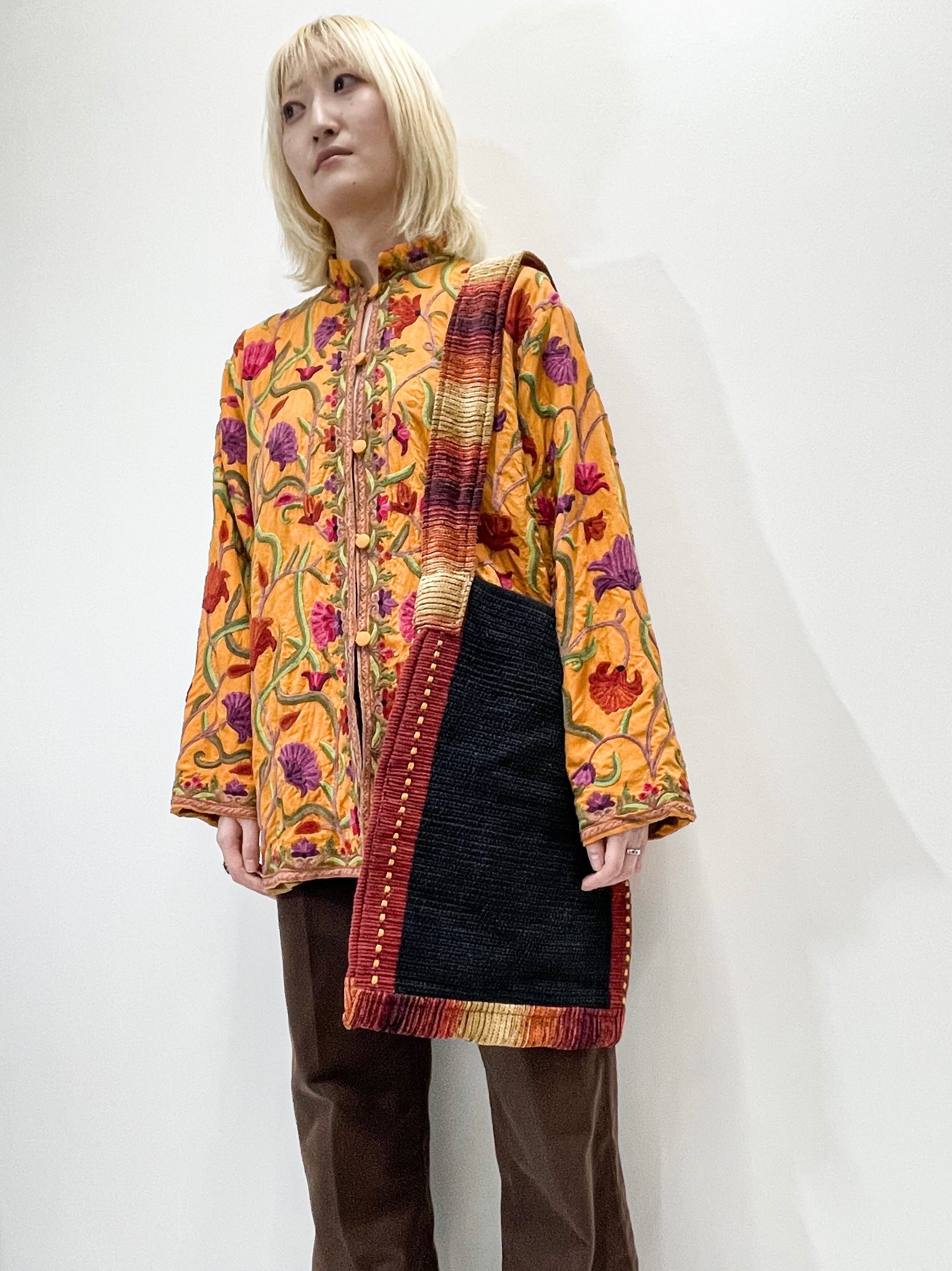 レーヨン素材にボタニカルな刺繍がたっぷり入った華やかなデザインです。